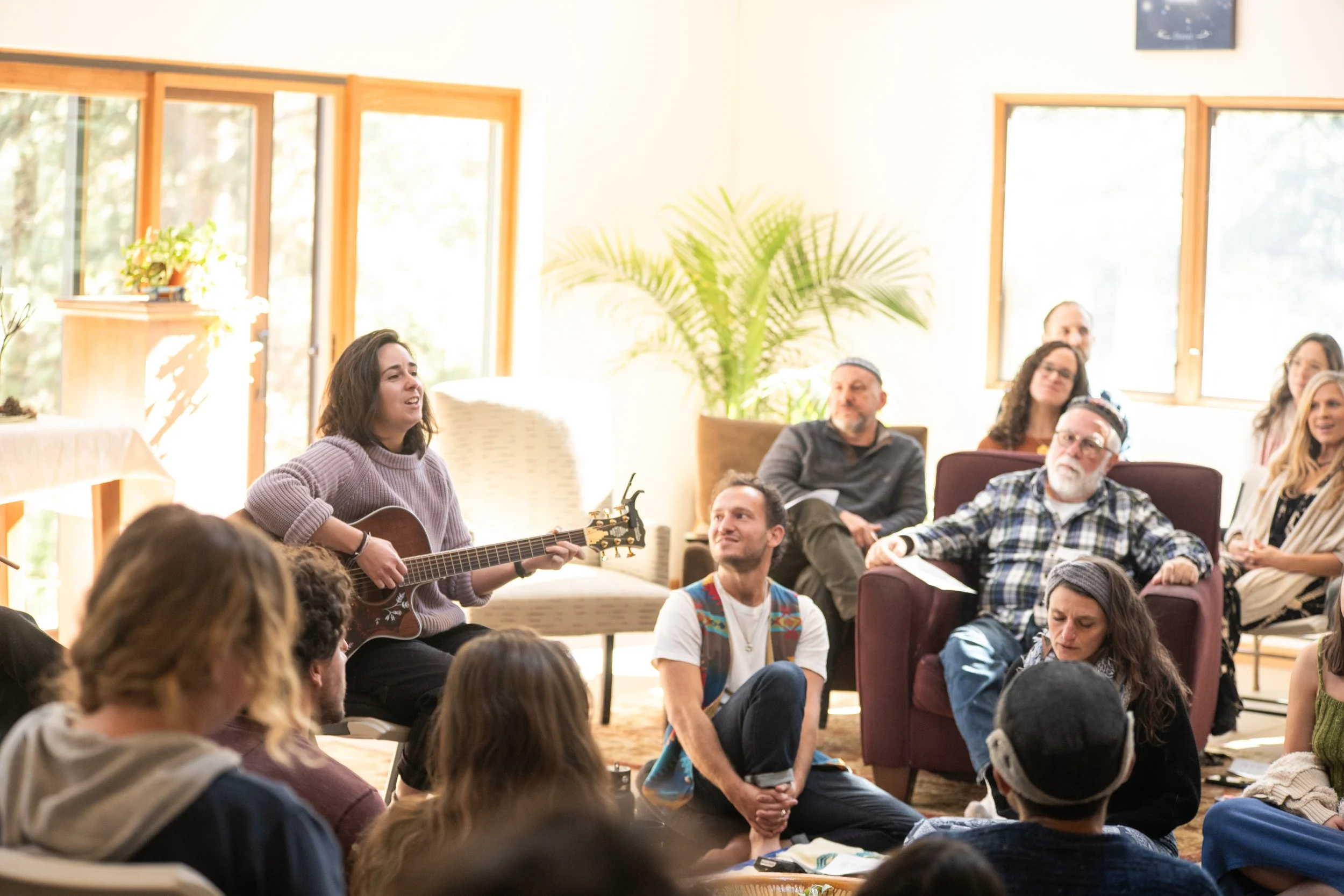 Aly partners with communities to offer invigorating communal ritual, song & prayer. As an Artist-in-Residence, Aly leads services, workshops, song circles, and concerts crafted to meet the specific needs, strengths, and goals of your congregation. Aly creates compassionate and inviting spaces where people feel comfortable bringing their whole voices and selves. Each Shabbaton is designed to increase connection & healing through song on individual and collective levels. Below are some examples of the ritual, classes, and workshops she offers. You can read testimonials about Aly’s leadership and music here.